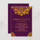 Carte de directions élégante avec une œuvre d'art géométrique mandala élégante sur un fond prune.