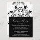Elégante invitation à la fête de fiançailles florales en noir et blanc.