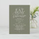 Célébrez la soirée magique avant le "oui" avec cette invitation de dîner de répétition sophistiquée et romantique — parfaite pour honorer le couple alors qu'ils se préparent pour leur grand jour. Points forts du design : esthétique minimaliste moderne avec une typographie serif en gras et un script fluide, le titre "Manger, boire et répéter" crée une atmosphère de rêve et intemporelle. Mise en page épurée avec suffisamment d'espace pour tous les détails essentiels du mariage (date, heure, lieu, informations RSVP) et texte blanc contemporain sur fond vert sauge olive — classique, chic et élégant sans effort. Parfait pour les dîners de répétition intimes, les célébrations pré-mariage en famille et entre amis proches et les couples qui aiment la calligraphie moderne et le luxe discret. Entièrement personnalisable sur Zazzle — personnalisez les noms, dates, lieux et ajoutez même vos propres couleurs ou polices. Imprimez sous forme de cartes plates, invitations pliées ou téléchargements numériques. Faites savoir à vos invités que c'est plus qu'un