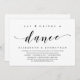 Carte d'invitation à l'élévation mariage (manger, boire et danser), à thème de script moderne. Il est parfait pour vos fêtes de mariage elopement décontracté au bord du lac.