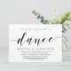 Carte d'invitation de mariage intime sur le thème du script moderne (Manger, Boire et Danser). C'est parfait pour votre célébration décontractée de mariage intime au bord du lac.
