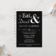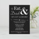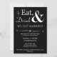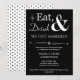 Invitez vos amis et votre famille à célébrer votre récent mariage avec cette invitation de mariage décontracté funky rétro blanc sur noir Manger, Boire & Être Marié !