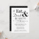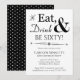 Ça va être une fête d'anniversaire de 60 ans incroyable, alors préparez le terrain avec cette invitation funky rétro noir et blanc Manger, Boire & Être Soixante ! Des fournitures de fête assorties sont disponibles.