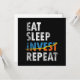 Belle et motivationnelle idée cadeau et conception de carte d'invitation pour chaque commerçant et investisseur disant "Mange sommeil investir répéter". Idéal pour chaque commerçant aime investir son argent sur le marché stock, crypto-monnaie ou l'immobilier. C'est parfait pour chaque investisseur.