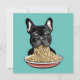 Drôle chien de taureau français mangeant des nouilles.