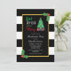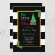 Mangez, buvez et soyez joyeux Noël bachelorette invitation avec un arbre de Noël et des cadeaux contre un cadre d'or. Arrière - plan rayé noir et blanc avec saint