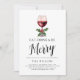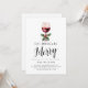 Elégante invitation simpliste à la fête de Noël. Design élégant et moderne dans le blanc rouge et noir. Caractéristiques typographie script police et vin rouge verre. Idéal pour un dîner de fête élégant. Personnalisez avec vos propres détails. Invitations Zazzle imprimées ou téléchargement instantané modèle imprimable numérique.