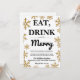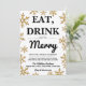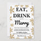 Invitation Mangez Boire Soyez Joyeux Noël Party Gold Snowflak