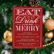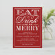 Invitation Mangez, buvez et soyez Joyeux Festif Rouge Noël