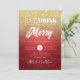 Invitation Mangez, Buvez Soyez Joyeux Gold Red Bokeh Noël