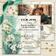 Une faire-part de mariage tout-en-un fantaisiste artistique agrémentée d'un tableau de fleurs blanches en marbre. Au dos se trouve votre photo préférée et un modèle de code QR optionnel avec des informations sur les réponses.