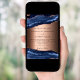 Une faire-part de mariage moderne et tendance. Porte d'or bleu et rose, arrière - plan en pierre de marbre. Personnalisez et ajoutez vos noms et les détails.