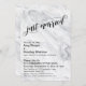 Cette carte distinctive a été conçue pour vous aider à inviter vos amis et votre famille à votre réception de mariage ou à votre fête organisée quelque temps après la cérémonie de mariage elle-même. Le fond était recouvert d'un motif de marbre gris et blanc. Sur cette surface, en utilisant une police de caractères cursive moderne et tourbillonnante, j'ai créé une superposition graphique de typographie qui indique "juste mariés" avec des volutes et des courbes extravagantes. Cette police de caractères a été associée à une police sans-serif complémentaire et polyvalente pour représenter vos informations personnelles. Utilisez les champs de modèle fournis pour mettre à jour le design. Si vous souhaitez personnaliser davantage, déplacer des détails ailleurs, modifier les polices ou les tailles, cliquez simplement sur le lien fourni et modifiez le design comme vous le souhaitez. J'ai ajouté toutes les couches séparément et elles sont déverrouillées pour vous donner un contrôle total sur la conception. //