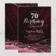 Bourgogne et argent agate 70e anniversaire invitation de fête. Design élégant et moderne avec vin de marsala, arrière - plan de géode de marbre d'aquarelle rouge foncé, faux parties scintillant argent et script de typographie. Carte invitation branchée parfaite pour une célébration anniversaire féminine élégante. Invitations Zazzle imprimées ou téléchargement instantané modèle imprimable numérique.