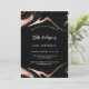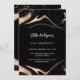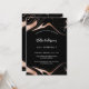 Un arrière - plan noir. Décoré de veines de marbre doré rose. Personnalisez et ajoutez votre nom et les détails de votre fête. Texte blanc.