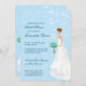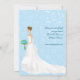 Une jeune mariée descend serein le bas-côté à cette belle invitation nuptiale de douche. Elle fait face au texte customisé sur l'avant et a marché à travers la page sur l'inverse. L'arrière - plan est un motif bleu de jolie damassé recouvert avec les vignes florales tourbillonnantes, alors que le bouquet et les boucles d'oreille de la jeune mariée assortissent le bleu. Disponible dans des couleurs alternatives avec les produits assortis et des options pour différentes appartenances ethniques de jeune mariée. Veuillez entrer en contact avec ce magasin pour customiser cette invitation aux couleurs nuptiales spécifiques.