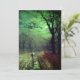 Carte représentant la peinture de John Atkinson Grimshaw A Moonlit Evening (1880). Une lune hantante remplit le ciel nocturne de l'Angleterre victorienne en tant que femme dans une rue bordée d'arbres. Devant elle se trouve un bâtiment éclairé. Un grand cadeau pour les amateurs de romantisme et d'Angleterre victorienne.