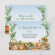 Célébrez l'amour avec un charme rustique ! Cette carte d'invitation pour une fête de mariage au marché des fermiers présente des paniers aquarelles de fruits et légumes frais, de tournesols, de pots de miel et d'herbes qui sont parfaits pour une fête sur le thème de la ferme à la table ou du jardin. C'est un choix unique pour les mariées qui adorent le style organique et les vibrations de la campagne. Idéal pour les fêtes de mariage printanières ou estivales, les brunchs ou les fêtes de cuisine. Le verso révèle que tout a été acheté et que la table est vide. Utilisez-la comme carte d'information, carte d'informations de registre ou comme demande de recette. Disponible avec des produits assortis.