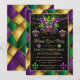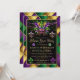 Célébrez dans le style vibrant de La Nouvelle-Orléans avec ce design luxueux inspiré du Mardi Gras. Le vert émeraude riche, le pourpre royal et l'or profond créent un fond dramatique, accentué de textures de bijoux scintillants et d'un masque de mascarade orné de plumes. L'écriture élégante, les fioritures scintillantes et les éléments de fleur de lis glamour rendent ce design parfait pour les célébrations festives. Idéal pour les quinceañeras, les anniversaires marquants, les fêtes de Mardi Gras ou tout événement qui appelle une couleur audacieuse et une ambiance de carnaval opulente.