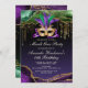 Laissez les bons moments rouler et fêter Mardi Gras avec cette magnifique invitation de la Masquerade Party émeraude, or et violet! Avec un design unique et attrayant, cette invitation ravira vos invités et les fera vivre dans l'esprit des vacances. Avec une belle palette de couleurs et un motif de masque complexe, cette invitation est parfaite pour toute mascarade ou événement à thème Mardi Gras. Les options de stock de cartes de qualité supérieure vous feront certainement une impression durable, et l'invitation sera chère comme un souvenir de votre célébration spéciale. Alors n'attendez pas - commencez la fête avec cette belle et unique invitation de fête mascarade !