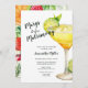 Marges super colorées avant Mariage Bridal Shower Invitation présente une énorme margarita aquarelle sur le devant et des garnitures sur le dos.
