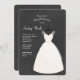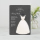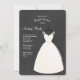 Une invitation chic avec une robe mariage, sur un cintre, contre un arrière - plan de charbon de bois sombre. <br/>() La carte est facile à customiser avec votre libellé, police, couleur de police, options de forme de papier et choix de six types de papier.<br/>() Pas exactement ce que vous cherchez? Tous nos produits peuvent être conçus sur mesure pour répondre à vos besoins sans frais supplémentaires.<br/>() Il vous suffit de nous contacter à askpixieprints@aol.com. b) a) Coordonner les produits disponibles : Demande-nous !