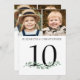 Créez un numéro de table mariage mémorable avec ces cartes photos 5x7 montrant différentes photos de la mariée et du marié au cours des années pour un panneau de numéro de table divertissant pour les invités mariages. Le design se compose d'un spray de verdure simple et élégant. Amusant d'avoir des photos d'âge similaires sur le même panneau et des photos différentes sur chaque table que les invités se mélangent. Imprimé sur les deux côtés pour un affichage recto verso. ASSISTANCE : Pour obtenir de l'aide sur la modification ou la personnalisation de la conception, le changement de couleur, le redimensionnement ou le transfert de la conception à un autre produit, contactez le concepteur AVANT DE COMMANDER via l'onglet MESSAGE Conversation Zazzle ci-dessous ou envoyez un courriel à makeitaboutyoustore@gmail.com.
