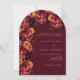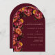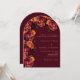 Faire-part de mariage en arc. Pour une mariage élégante et romantique. Un arrière - plan bordeaux décoré de fleurs bordeaux, roses et pêche. Personnalisez et ajoutez vos noms et détails.