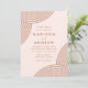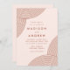 Invitations de mariage modernes avec des lignes géométriques tourbillonnantes couleur terre cuite aux coins avec un arrière - plan clair. Personnalisez les invitations de mariage blush et terre cuite en ajoutant vos noms et les détails du mariage. Les invitations de mariage de boho modernes s'inversent pour montrer un arrière - plan solide et blush.