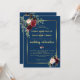 Invitation Mariage à cadre doré floral bleu marine Bourgogne