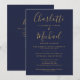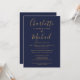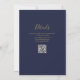 Invitation Mariage à code QR bleu marine et or, réception uni