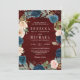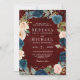 Invitation Mariage à code QR floral bordeaux bleu marine pêch
