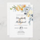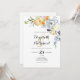 Un country chic traditionnel blanc, orange, blanc et bleu a dessiné des invitations de mariage à l'aquarelle fleurie avec l'ampersan orange tendance et typographie de personnaliser initiales.