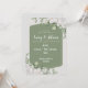Il s'agit d'une faire-part de mariage au design simple et élégant. La palette de couleurs verte et blanche est parfaite pour un mariage de printemps ou d'été. L'élégante police avec des fleurs et des vignes délicates s'harmonise à n'importe quel thème mariage de printemps ou d'été.