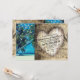 Faire-part de mariage tropical exotique avec un cadre estival de plage, des guirlandes lumineuses et un palmier rustique avec un cœur sculpté contenant les détails de votre mariage.