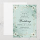 Des fleurs délicates et des frondes verdoyantes créent une charmante frontière autour de ce design serein. La palette de couleurs douces évoque un sentiment d'amour doux et de beauté naturelle, parfait pour une occasion élégante.