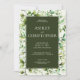 Invitation de mariage classique et élégante au charme moderne avec une bordure d'aquarelle botanique dans une palette harmonieuse de tons verts variés sur un arrière - plan vert foncé. L'invitation et la papeterie qui l'accompagne sont pensées pour évoquer un sentiment de tranquillité et de sophistication, avec des accents de verdure délicats qui ajoutent une touche de fantaisie. Les lignes fluides et douces de l'aquarelle complètent la typographie raffinée, dégageant une modernité simple, de la chaleur et du style. L'invitation capte magnifiquement l'essence de la nature, ce qui en fait un choix idéal pour les mariages boho rustiques modernes toute l'année. ❀ ❀ Entièrement personnalisable et facilement personnalisable. Si nécessaire, contactez-nous pour obtenir de l'aide pour personnaliser ou customiser selon vos souhaits. Ou, pour vous aider à créer des produits connexes pour créer votre suite de papeterie mariage parfaite. Nous sommes heureux d’aider et d’espérer créer des produits qui contribueront à votre événement le plus mémorable. ❀ ❀ Retour de carte disponible dans une collection de subtiles couleurs boho rustiques modernes.