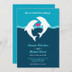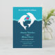Cette invitation de mariage moderne et colorée, bleue, met en vedette deux dauphins joueurs dans les vagues de l'océan. Parfait pour un mariage à destination sur la plage au bord de la mer ou un mariage sur un bateau de croisière. Personnalisez facilement avec vos détails de mariage.