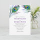 Un design moderne d'invitation de mariage à la plume de paon aquarelle.