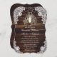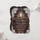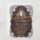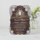 Faire-part de mariage fleurie rustique personnalisée avec fleurs à l'haleine de bébé, lanterne et lampes à cordes contre un arrière - plan en bois rustique. Ce faire-part de mariage à thème rustique est parfait pour votre pays rustique, ou mariage de grange inspiré par le souffle du bébé.