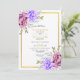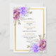 Invitation Mariage à l'aquarelle violet fleurs or cadre