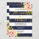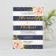 Invitation Mariage à rayures bleu marine et fleurs & points e