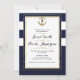 Invitation Mariage à rayures nautiques d'ancre blanche et or