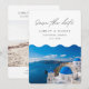 Capturez la beauté de Santorin et invitez vos invités avec style avec cette invitation de sauvegarde de date photo. La photo de devant de Santorin donne le ton parfait pour votre jour de mariage. Ajoutez votre propre photo au verso et personnalisez le texte pour le rendre vôtre.