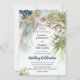 Une grande invitation aux mariages de plage ou de bateau, avec un feuillage de palmiers tropicaux, un panneau de plage en bois, de beaux coquillages et des poissons d'étoiles bleu et blanc aquatique. La modèle mariage est détaillée avec des accents bleus de l'océan et est facile à customiser.