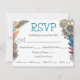 Joli mariage à thème steampunk RSVP. Jolies engrenages métalliques, plumes turquoise et fleurs cachées dans des engrenages métalliques et des bibelots.
