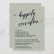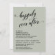 Voici un choix amusant et simple pour vos besoins de célébration d'après-mariage. Sur un fond uni modifiable, j'ai placé un graphique typographique qui indique "happily ever after" avec une police script élaborée ornée de cœurs. En dessous, vos coordonnées apparaissent dans une police simple en majuscules. Utilisez les champs du modèle pour ajouter vos propres informations et cliquez pour personnaliser davantage si vous souhaitez apporter d'autres modifications. Toutes les couches sont déverrouillées pour vous permettre de contrôler entièrement le positionnement et la taille.