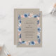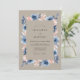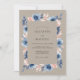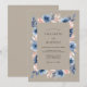 Ce design présente une palette sophistiquée de taupe, de bleu acier et de pêche doux. Des anémones aquarelles peintes à la main et un feuillage délicat créent une atmosphère romantique. Le fond terreux offre une sensation chaleureuse et rustique parfaite pour un événement d'inspiration bohème. Les pétales bleus profonds contrastent magnifiquement avec les tons neutres atténués.