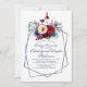 Cartes d'invitation de mariage anniversaire de dégustation de vin de fleurs rouges de Bourgogne et de bleu marine d'automne