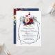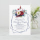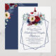 Cartons d'invitation pour anniversaire de mariage automnal avec dégustation de vin et fleurs rouges de Bourgogne et bleues marine